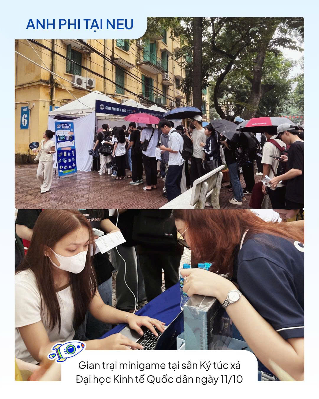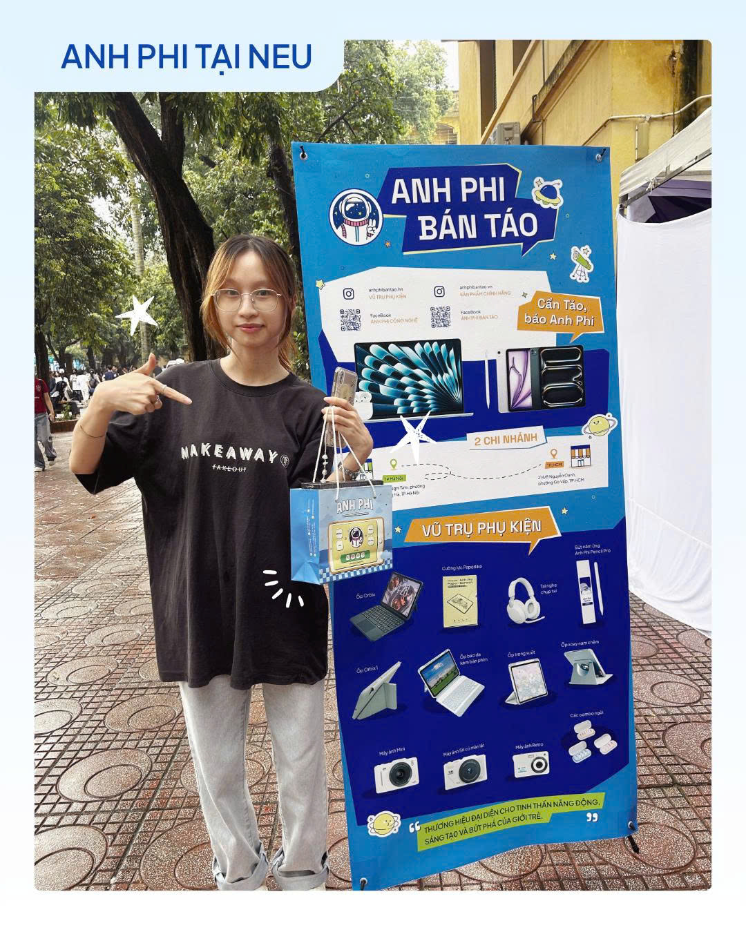 Anh Phi Bán Táo rất vui khi thấy các bạn sinh viên nán lại xếp hàng chơi minigame, check-in và nhận quà liền tay 🎁